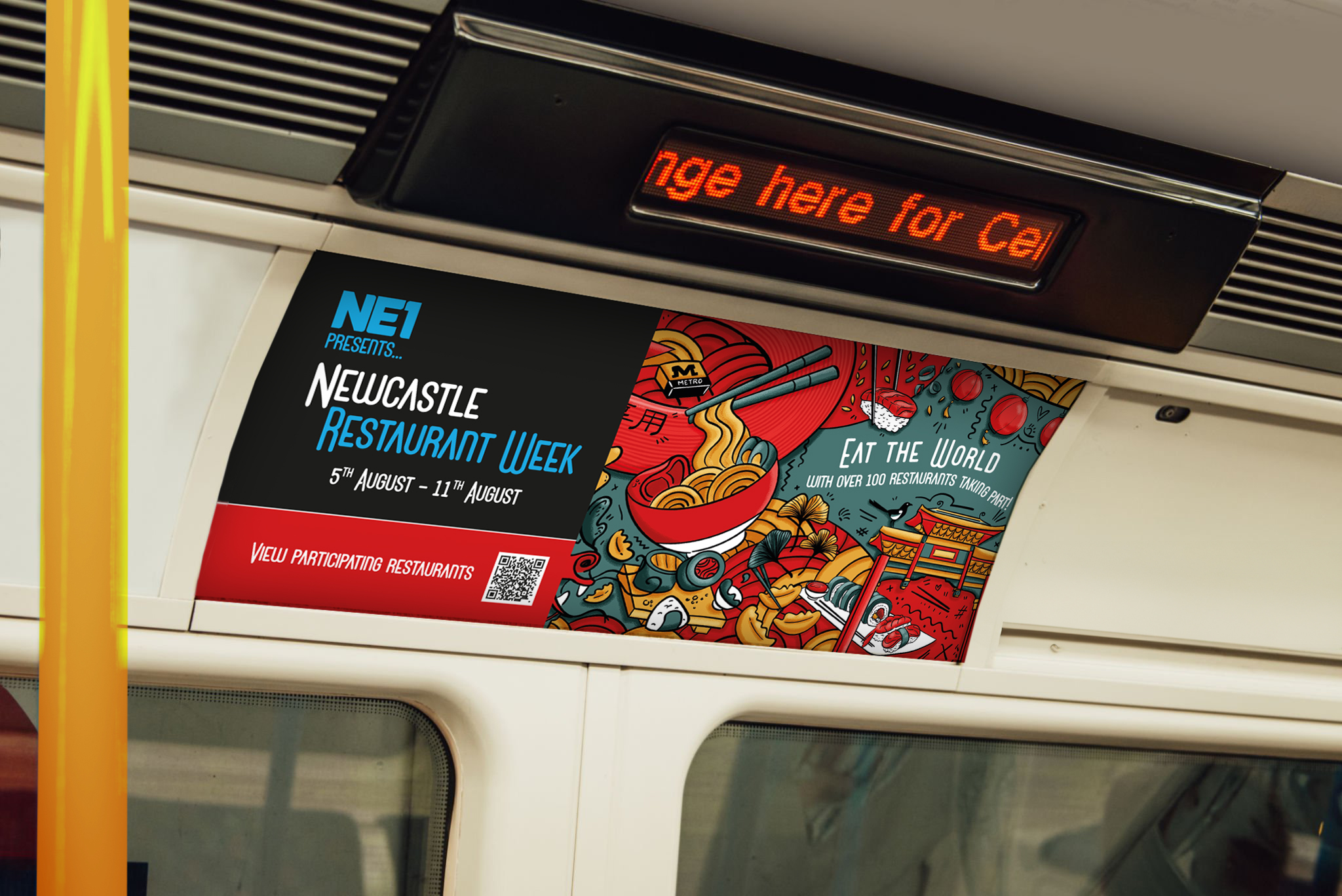 Working closely with the media buying company, we created a complete suite of assets for placements across OOH such as bus stops and metro carriage cards, digital and social static and animated graphics and materials for participating restaurants to use for promotion.